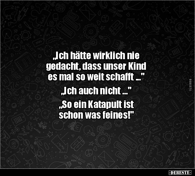 „Ich hätte wirklich nie gedacht, dass unser Kind es mal so weit schafft ..." „Ich auch nicht ..." „So ein Katapult ist schon was feines!"