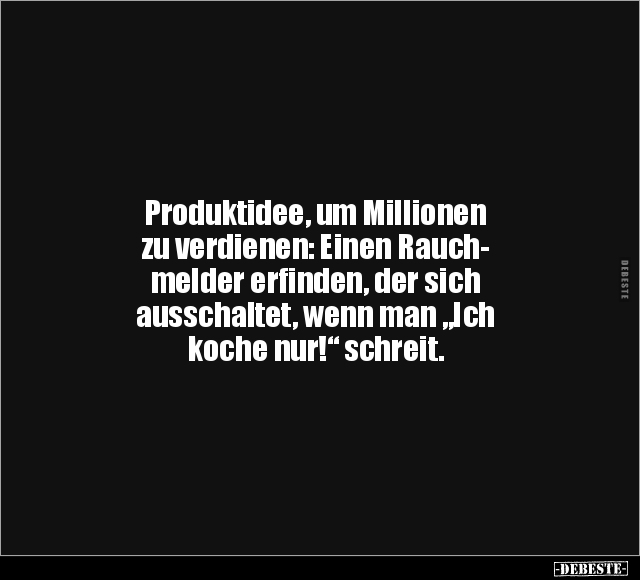 Produktidee, um Millionen zu verdienen: Einen Rauch- melder erfinden, der sich ausschaltet, wenn man „Ich koche nur!“ schreit.