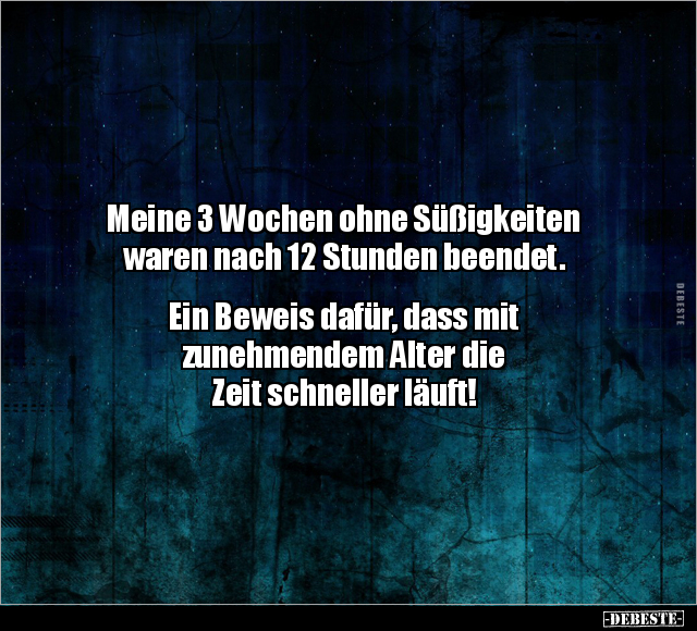 Meine 3 Wochen ohne Süßigkeiten waren nach 12 Stunden beendet. Ein Beweis dafür, dass mit zunehmendem Alter die Zeit schneller läuft!