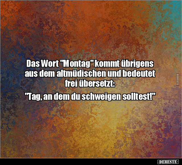 Das Wort "Montag" kommt übrigens aus dem altmüdischen und bedeutet frei übersetzt: "Tag, an dem du schweigen solltest!"