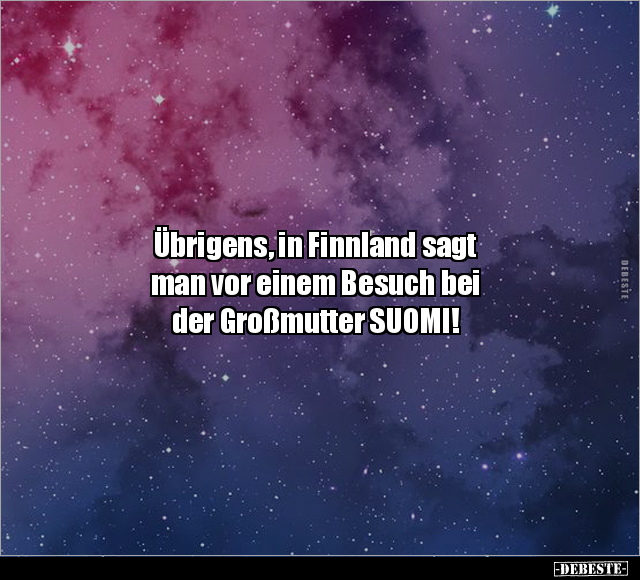 Übrigens, in Finnland sagt man vor einem Besuch bei der Großmutter SUOMI!