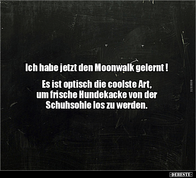Ich habe jetzt den Moonwalk gelernt ! Es ist optisch die coolste Art, um frische Hundekacke von der Schuhsohle los zu werden.