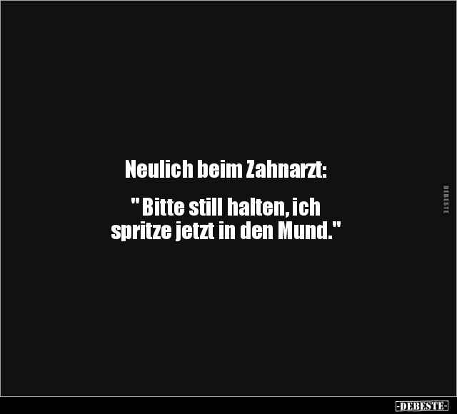 Neulich beim Zahnarzt: " Bitte still halten, ich spritze jetzt in den Mund."