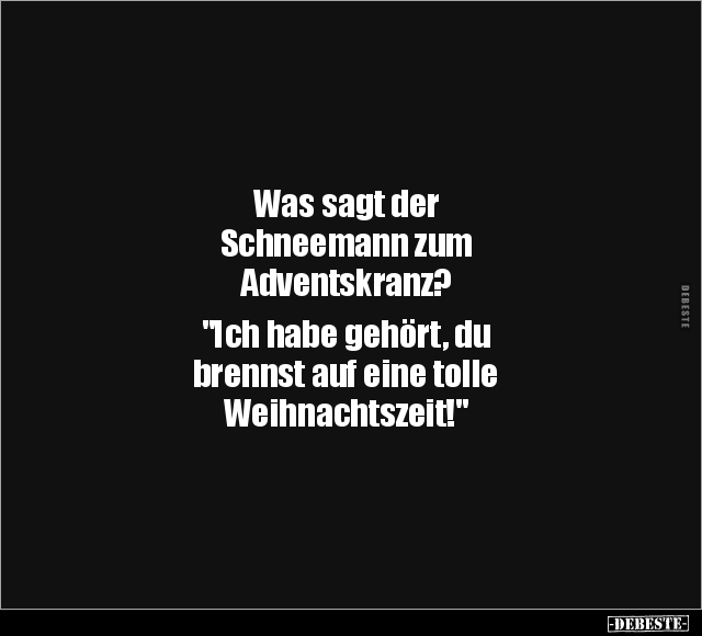Was sagt der Schneemann zum Adventskranz? "Ich habe gehört, du brennst auf eine tolle Weihnachtszeit!"
