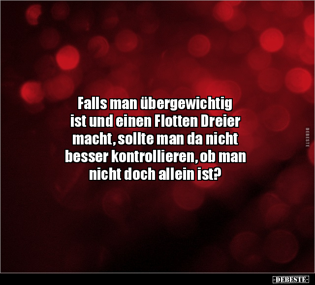 Falls man übergewichtig ist und einen Flotten Dreier macht, sollte man da nicht besser kontrollieren, ob man nicht doch allein ist?