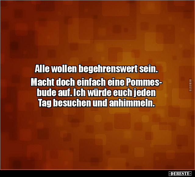 Alle wollen begehrenswert sein. Macht doch einfach eine Pommes- bude auf. Ich würde euch jeden Tag besuchen und anhimmeln.