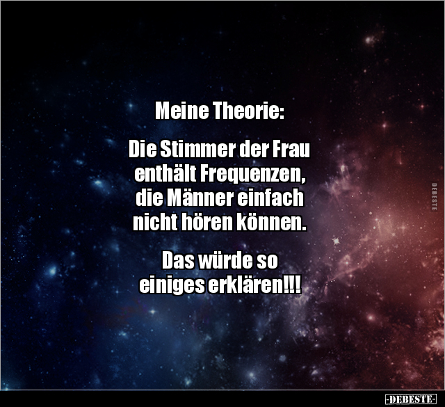 Meine Theorie: Die Stimmer der Frau enthält Frequenzen, die Männer einfach nicht hören können. Das würde so einiges erklären!!!