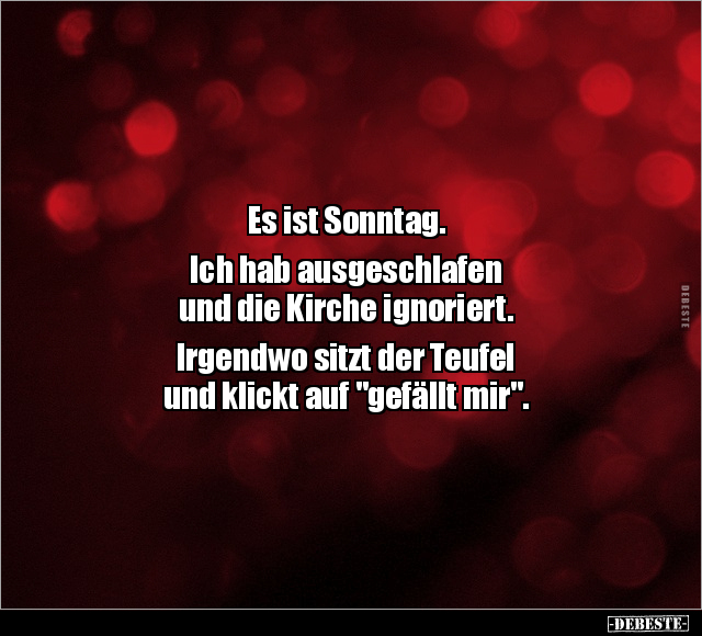 Es ist Sonntag. Ich hab ausgeschlafen und die Kirche ignoriert. Irgendwo sitzt der Teufel und klickt auf "gefällt mir".