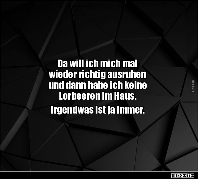 Da will ich mich mal wieder richtig ausruhen und dann habe ich keine Lorbeeren im Haus. Irgendwas ist ja immer.