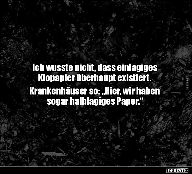 Ich wusste nicht, dass einlagiges Klopapier überhaupt existiert. Krankenhäuser so: „Hier, wir haben sogar halblagiges Paper.“