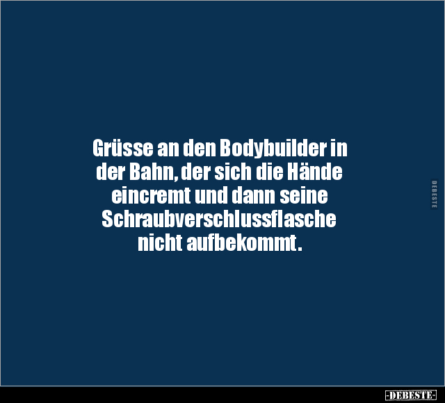 Grüsse an den Bodybuilder in der Bahn, der sich die Hände eincremt und dann seine Schraubverschlussflasche nicht aufbekommt.