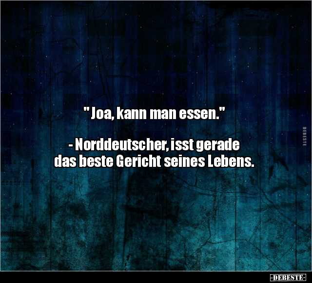 " Joa, kann man essen." - Norddeutscher, isst gerade das beste Gericht seines Lebens.