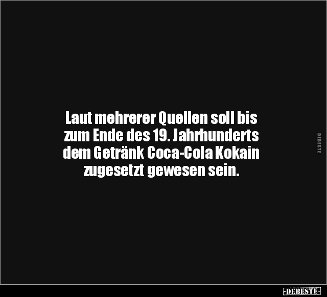Laut mehrerer Quellen soll bis zum Ende des 19. Jahrhunderts dem Getränk Coca-Cola Kokain zugesetzt gewesen sein.