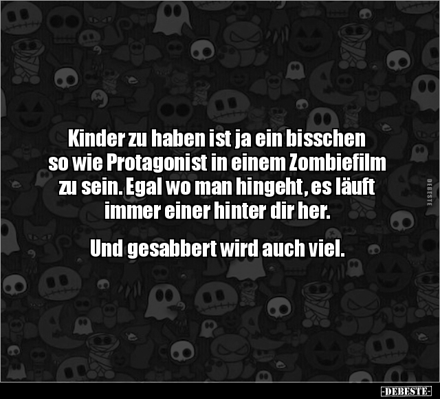 Kinder zu haben ist ja ein bisschen so wie Protagonist in einem Zombiefilm zu sein. Egal wo man hingeht, es läuft immer einer hinter dir her. Und gesabbert wird auch viel.