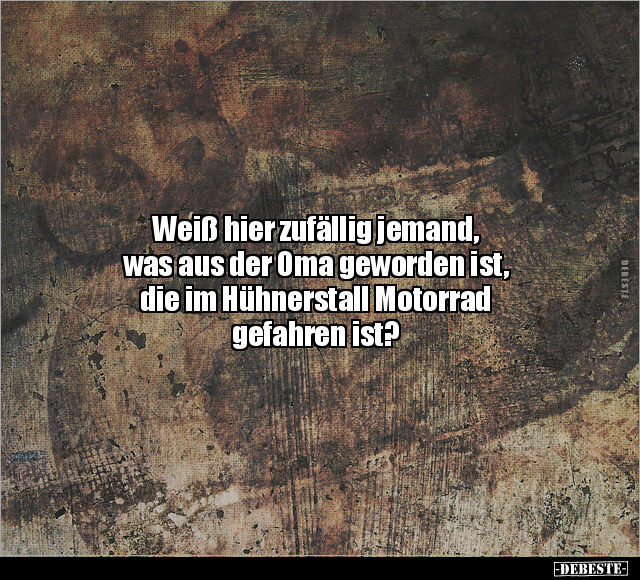 Weiß hier zufällig jemand, was aus der Oma geworden ist, die im Hühnerstall Motorrad gefahren ist?