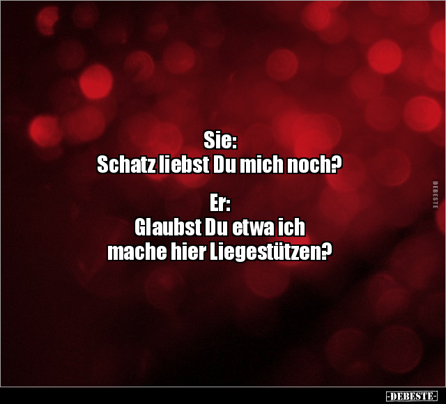 Sie: Schatz liebst Du mich noch? Er: Glaubst Du etwa ich mache hier Liegestützen?