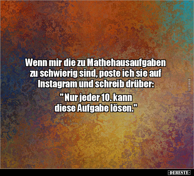 Wenn mir die zu Mathehausaufgaben zu schwierig sind, poste ich sie auf Instagram und schreib drüber: " Nur jeder 10. kann diese Aufgabe lösen."