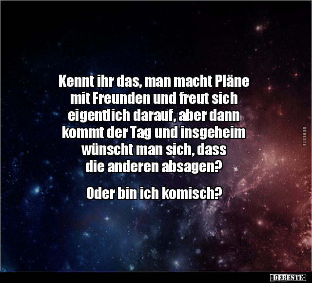 Kennt ihr das, man macht Pläne mit Freunden und freut sich eigentlich darauf, aber dann kommt der Tag und insgeheim wünscht man sich, dass die anderen absagen? Oder bin ich komisch?