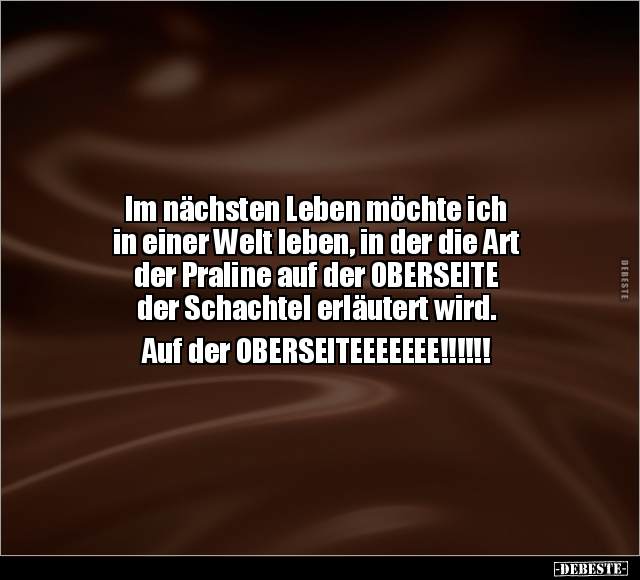 Im nächsten Leben möchte ich in einer Welt leben, in der die Art der Praline auf der OBERSEITE der Schachtel erläutert wird. Auf der OBERSEITEEEEEEE!!!!!!