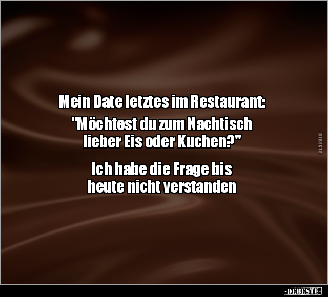 Mein Date letztes im Restaurant: "Möchtest du zum Nachtisch lieber Eis oder Kuchen?" Ich habe die Frage bis heute nicht verstanden
