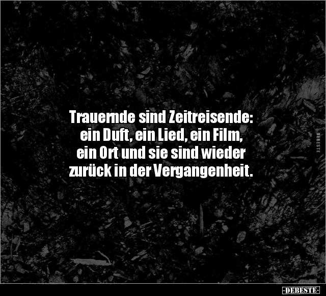Trauernde sind Zeitreisende: ein Duft, ein Lied, ein Film, ein Ort und sie sind wieder zurück in der Vergangenheit.