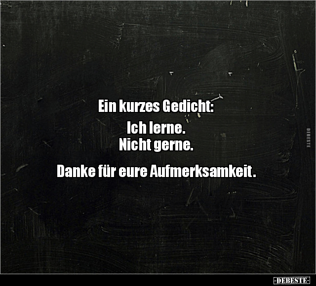 Ein kurzes Gedicht: Ich lerne. Nicht gerne. Danke für eure Aufmerksamkeit.