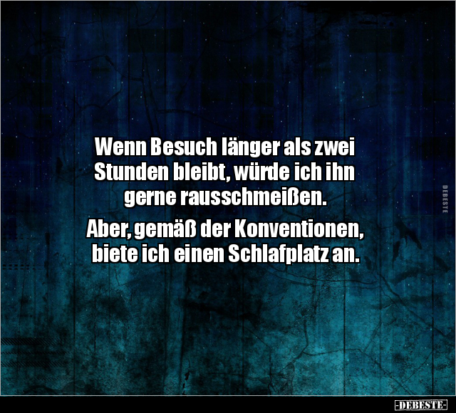 Wenn Besuch länger als zwei Stunden bleibt, würde ich ihn gerne rausschmeißen. Aber, gemäß der Konventionen, biete ich einen Schlafplatz an.