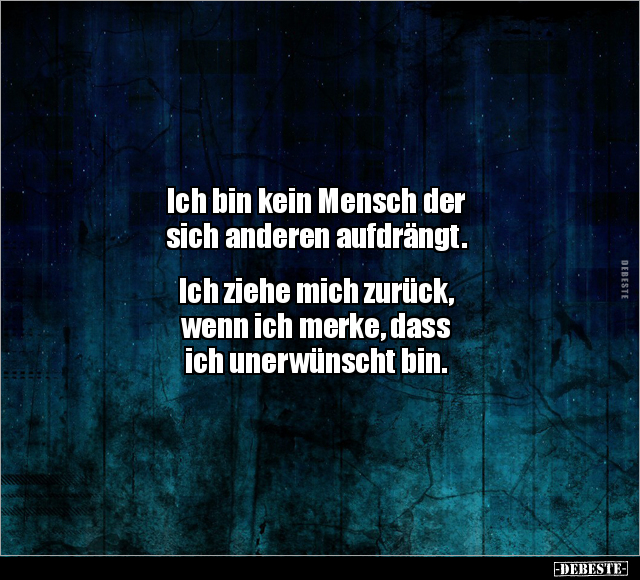 Ich bin kein Mensch der sich anderen aufdrängt. Ich ziehe mich zurück, wenn ich merke, dass ich unerwünscht bin.