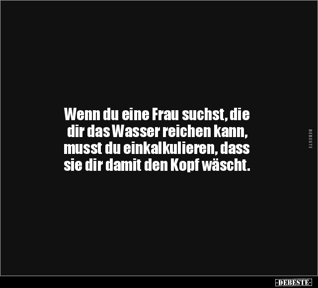 Wenn du eine Frau suchst, die dir das Wasser reichen kann, musst du einkalkulieren, dass sie dir damit den Kopf wäscht.