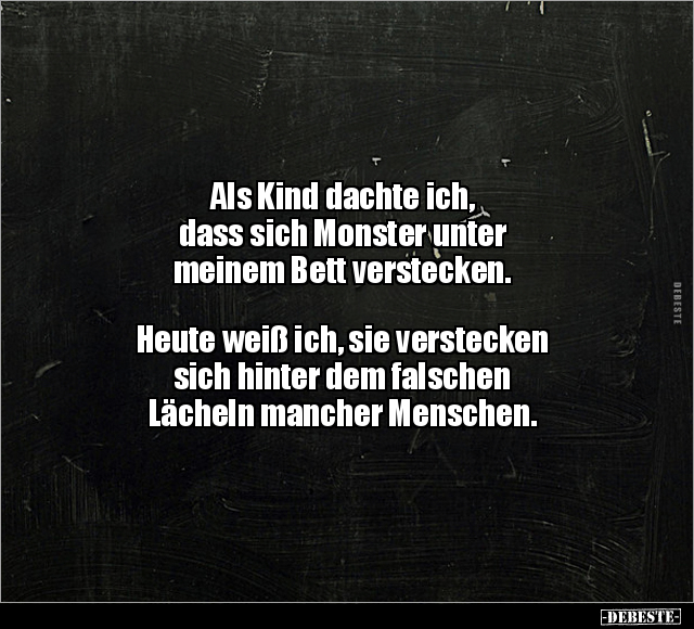 Als Kind dachte ich, dass sich Monster unter meinem Bett verstecken. Heute weiß ich, sie verstecken sich hinter dem falschen Lächeln mancher Menschen.