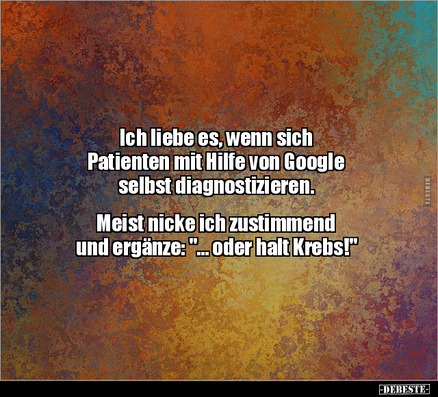 Ich liebe es, wenn sich Patienten mit Hilfe von Google selbst diagnostizieren. Meist nicke ich zustimmend und ergänze: "... oder halt Krebs!"