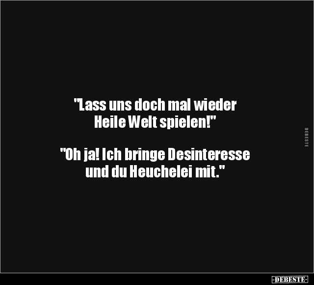 "Lass uns doch mal wieder Heile Welt spielen!" "Oh ja! Ich bringe Desinteresse und du Heuchelei mit."