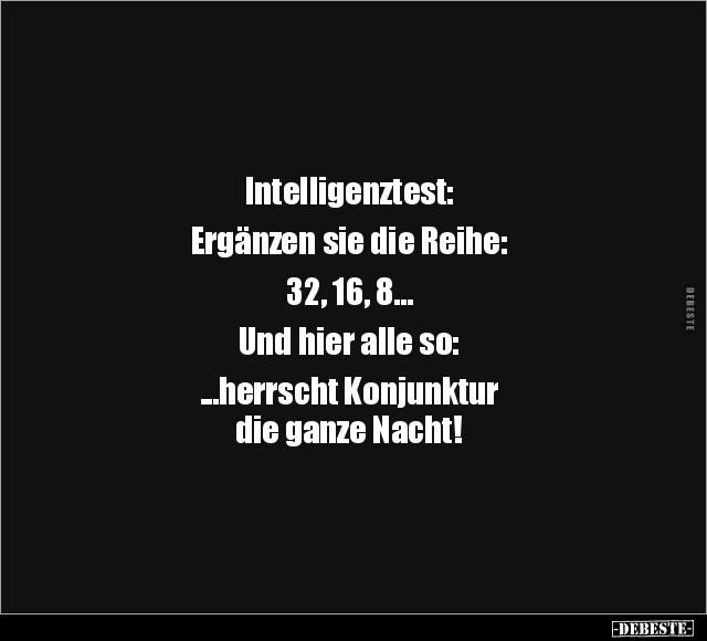 Intelligenztest: Ergänzen sie die Reihe: 32, 16, 8... Und hier alle so: ...herrscht Konjunktur die ganze Nacht!