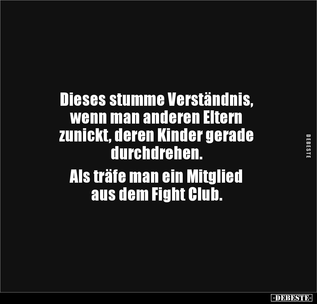 Dieses stumme Verständnis, wenn man anderen Eltern zunickt, deren Kinder gerade durchdrehen. Als träfe man ein Mitglied aus dem Fight Club.