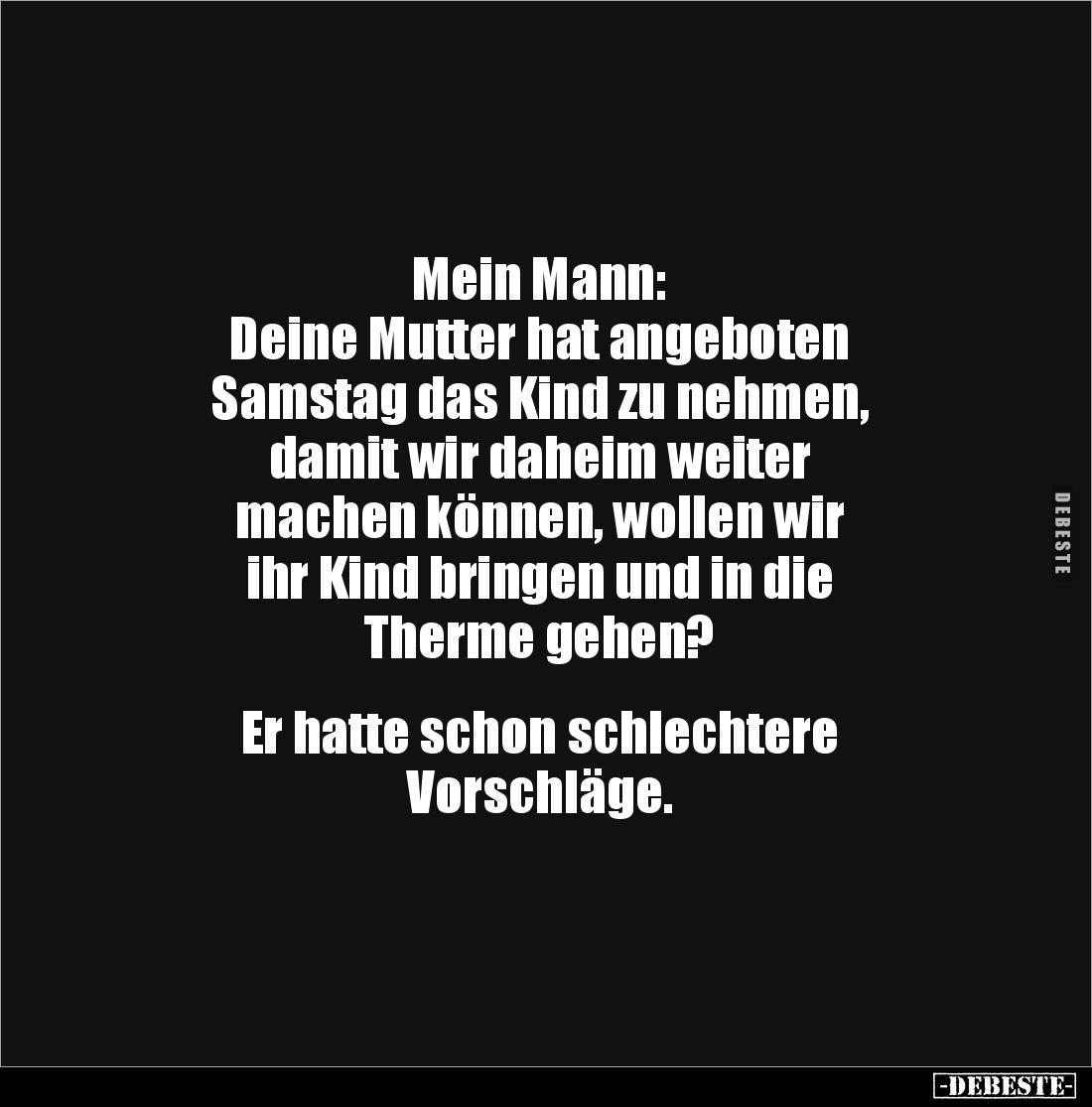 Mein Mann: Deine Mutter hat angeboten Samstag das Kind zu nehmen, damit wir daheim weiter machen können, wollen wir ihr Kind bringen und in die Therme gehen? Er hatte schon schlechtere Vorschläge.