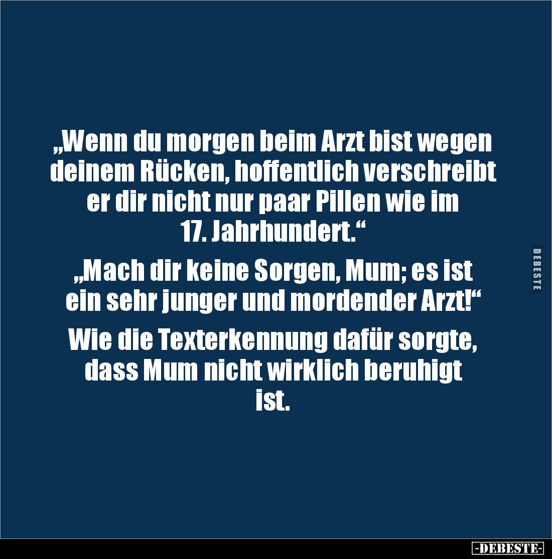 „Wenn du morgen beim Arzt bist wegen deinem Rücken, hoffentlich verschreibt er dir nicht nur paar Pillen wie im 17. Jahrhundert.“ „Mach dir keine Sorgen, Mum; es ist ein sehr junger und mordender Arzt!“ Wie die Texterkennung dafür sorgte, dass Mum nicht wirklich beruhigt ist.