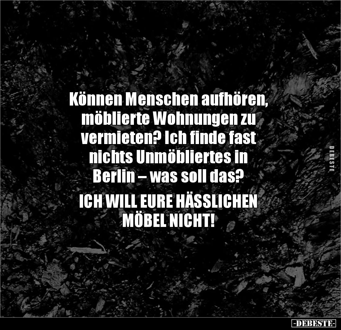 Können Menschen aufhören, möblierte Wohnungen zu vermieten? Ich finde fast nichts Unmöbliertes in Berlin – was soll das? ICH WILL EURE HÄSSLICHEN MÖBEL NICHT!