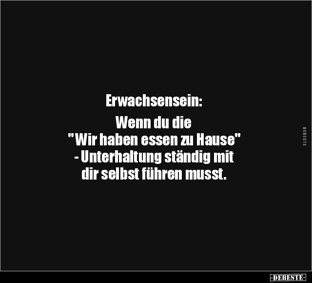 Erwachsensein: Wenn du die " Wir haben essen zu Hause" - Unterhaltung ständig mit dir selbst führen musst.