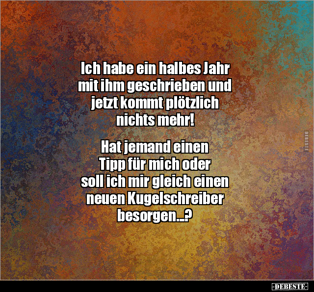 Ich habe ein halbes Jahr mit ihm geschrieben und jetzt kommt plötzlich nichts mehr! Hat jemand einen Tipp für mich oder soll ich mir gleich einen neuen Kugelschreiber besorgen...?