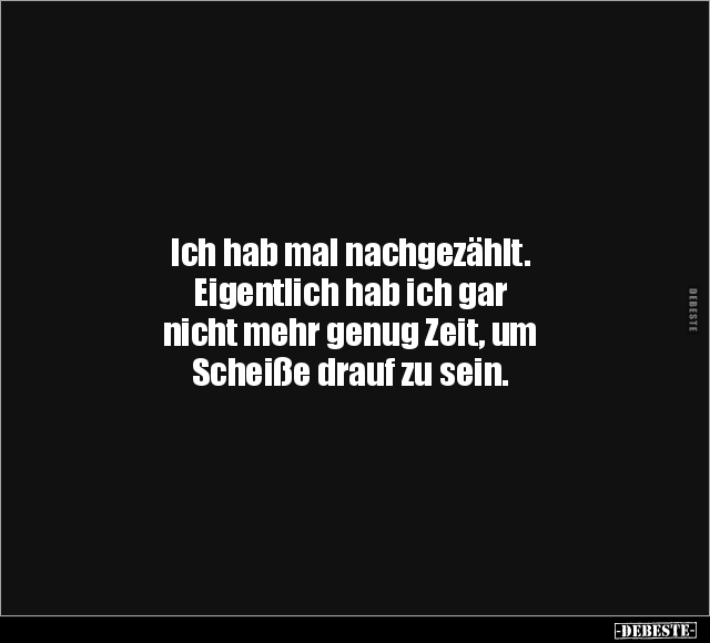 Ich hab mal nachgezählt. Eigentlich hab ich gar nicht mehr genug Zeit, um Scheiße drauf zu sein.