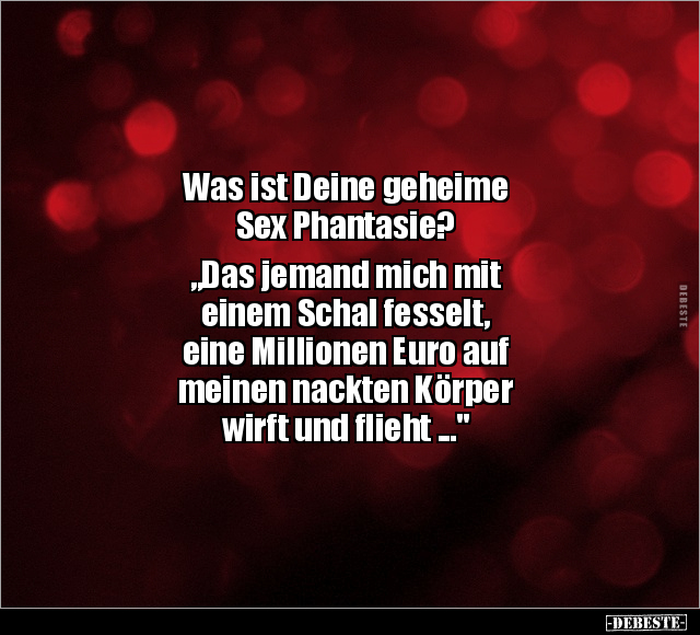 Was ist Deine geheime Sex Phantasie? „Das jemand mich mit einem Schal fesselt, eine Millionen Euro auf meinen nackten Körper wirft und flieht ..."