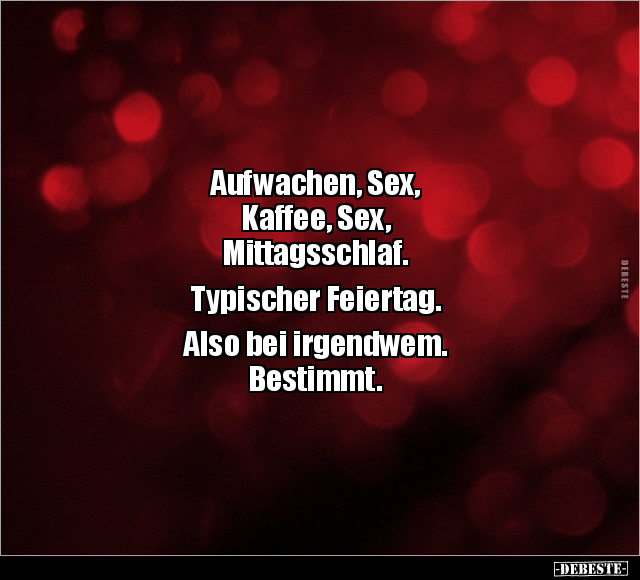 Aufwachen, Sex, Kaffee, Sex, Mittagsschlaf. Typischer Feiertag. Also bei irgendwem. Bestimmt.