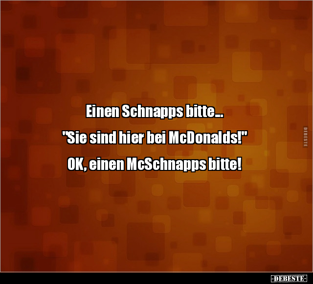 Einen Schnapps bitte... "Sie sind hier bei McDonalds!" OK, einen McSchnapps bitte!