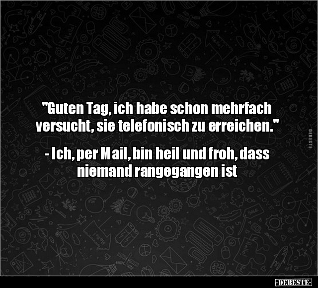 "Guten Tag, ich habe schon mehrfach versucht, sie telefonisch zu erreichen." - Ich, per Mail, bin heil und froh, dass niemand rangegangen ist