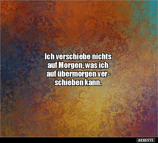 Ich verschiebe nichts auf Morgen, was ich auf übermorgen ver- schieben kann.
