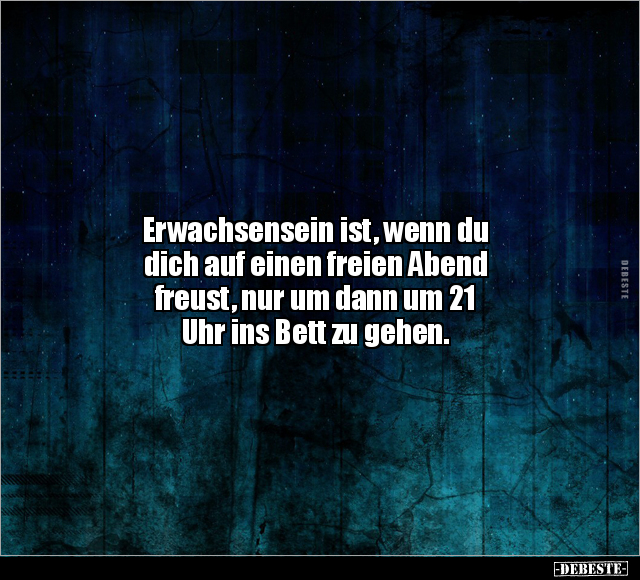 Erwachsensein ist, wenn du dich auf einen freien Abend freust, nur um dann um 21 Uhr ins Bett zu gehen.