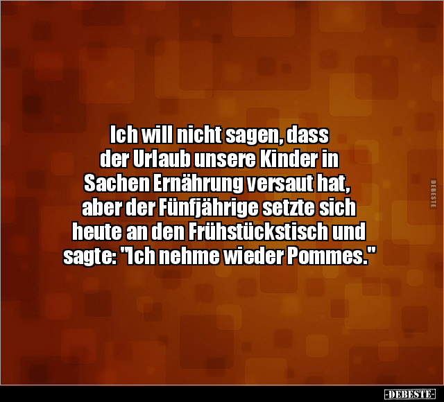 Ich will nicht sagen, dass der Urlaub unsere Kinder in Sachen Ernährung versaut hat, aber der Fünfjährige setzte sich heute an den Frühstückstisch und sagte: "Ich nehme wieder Pommes."