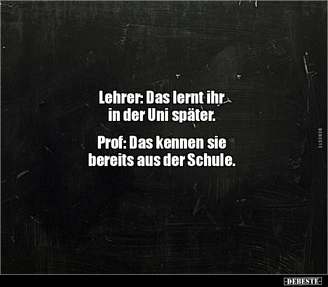 Lehrer: Das lernt ihr in der Uni später. Prof: Das kennen sie bereits aus der Schule.
