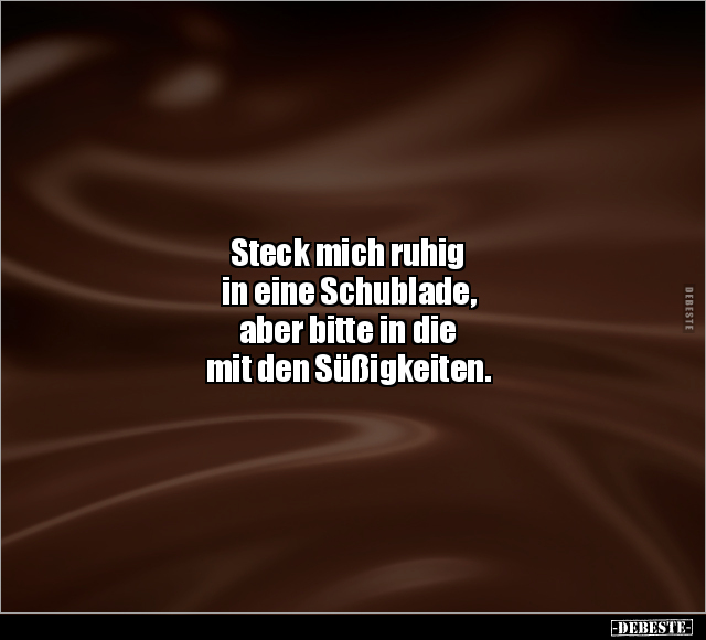 Steck mich ruhig in eine Schublade, aber bitte in die mit den Süßigkeiten.