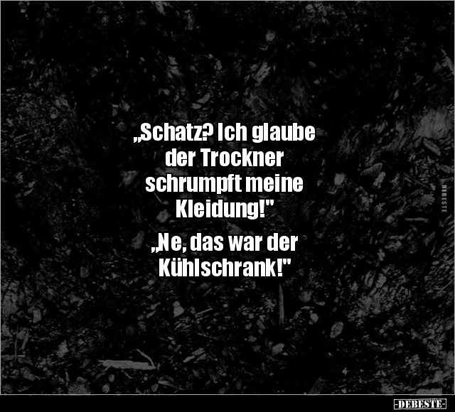 „Schatz? Ich glaube der Trockner schrumpft meine Kleidung!" „Ne, das war der Kühlschrank!"